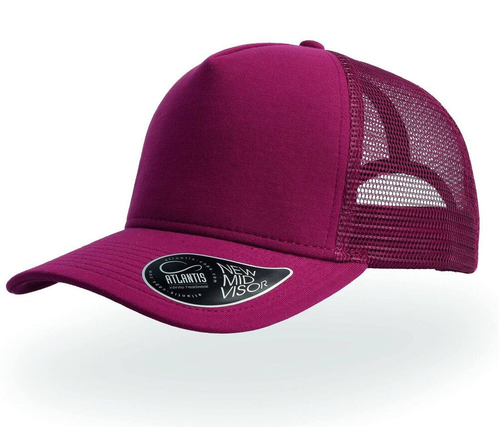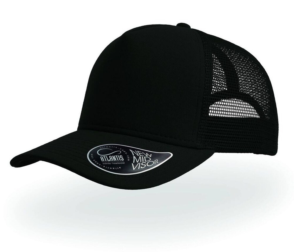 50% cotton / 50% polyester. 5 panels. trucker cap. structured front panel. precurved visor. sticker on bill. pvc closure. 8 stitchings on visor. cotton sweatband.