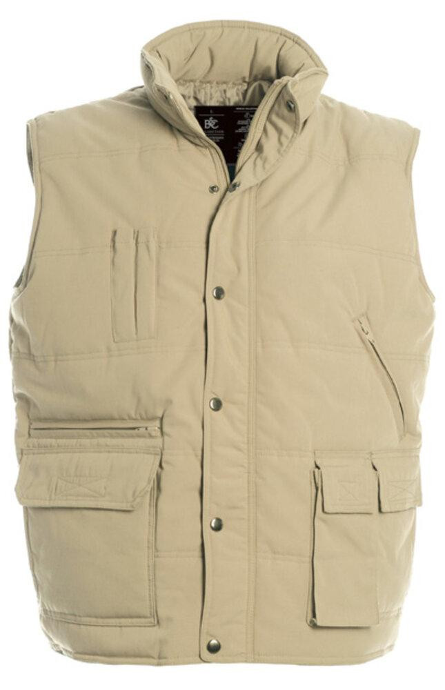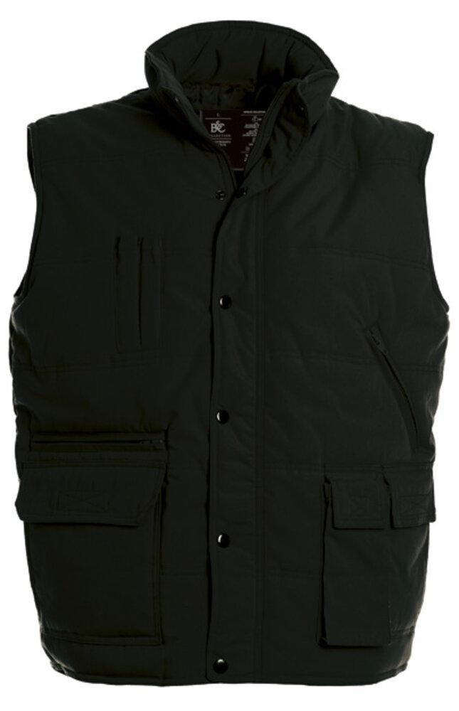 Multi-functional bodywarmer. Front covered full-zip with press-stud fastenings. 1 inner wallet pocket and 4 outer pockets (including 2 with zips). 2 extra outer pencil pockets. Adjustable wind-stoppers in the armholes with elasticated cord and stoppers. Open hem and 'low back'.