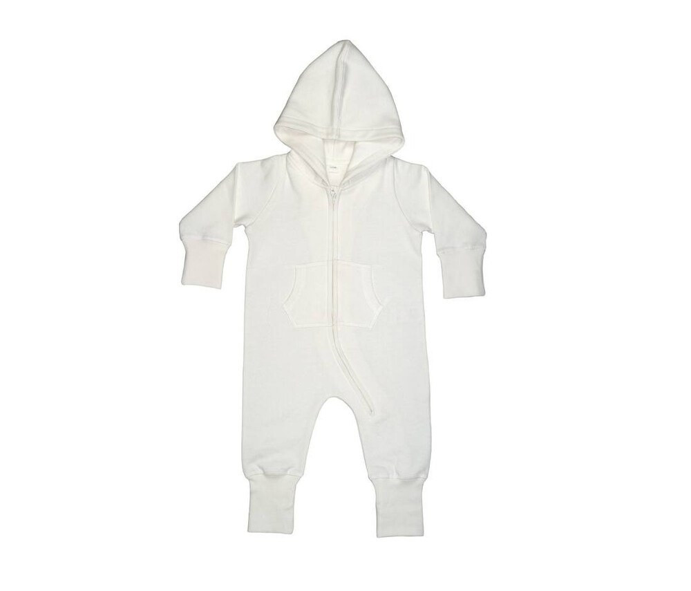 Baby and toddler All-in-one with cosy and soft brushed inner, and both 3 piece hood and extra-long cuffs (which can be folded back or left longer) for optimum fit. No centre back seam for increased decoration potential. Comfort tabs at top of zip. Oeko-tex® class 1 approved fabric. “Well-made” ethical manufacturing process. Brand-free back-neck area with tear off size and style label only.