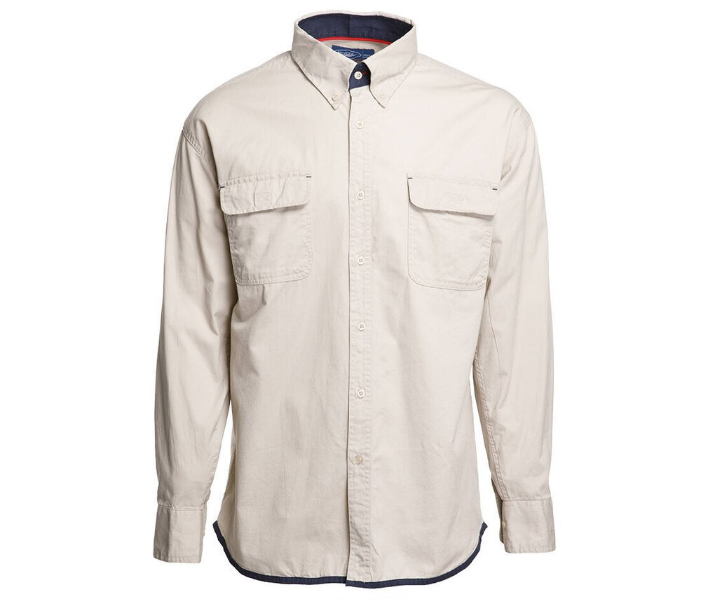100% twill. Shirt with two breast pockets with flap. Contrasted inner collar. Contrasted piping at hem. 2 patch pockets with flap.