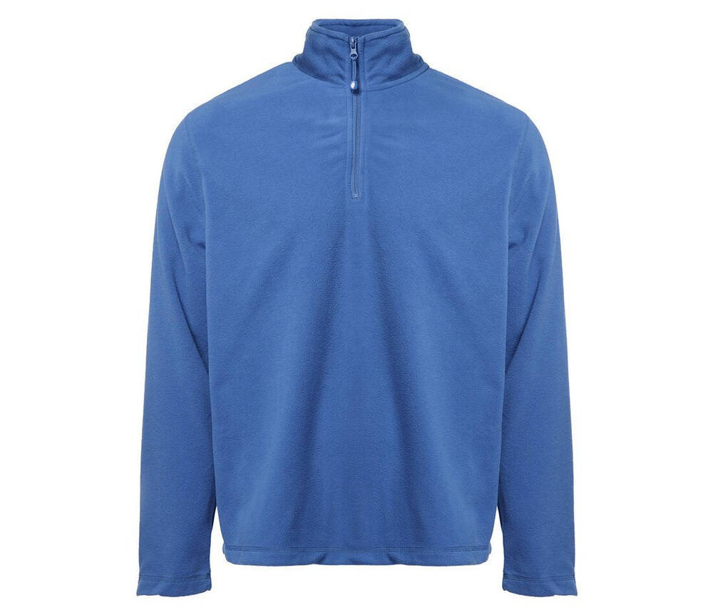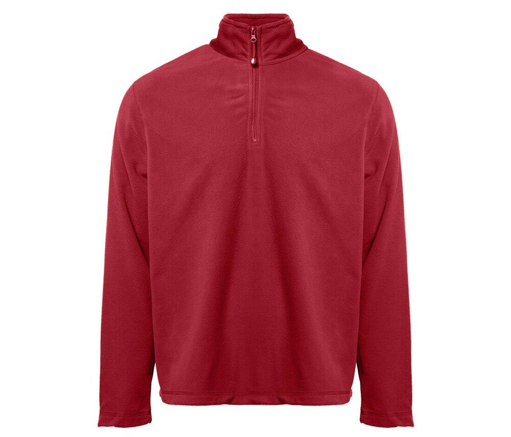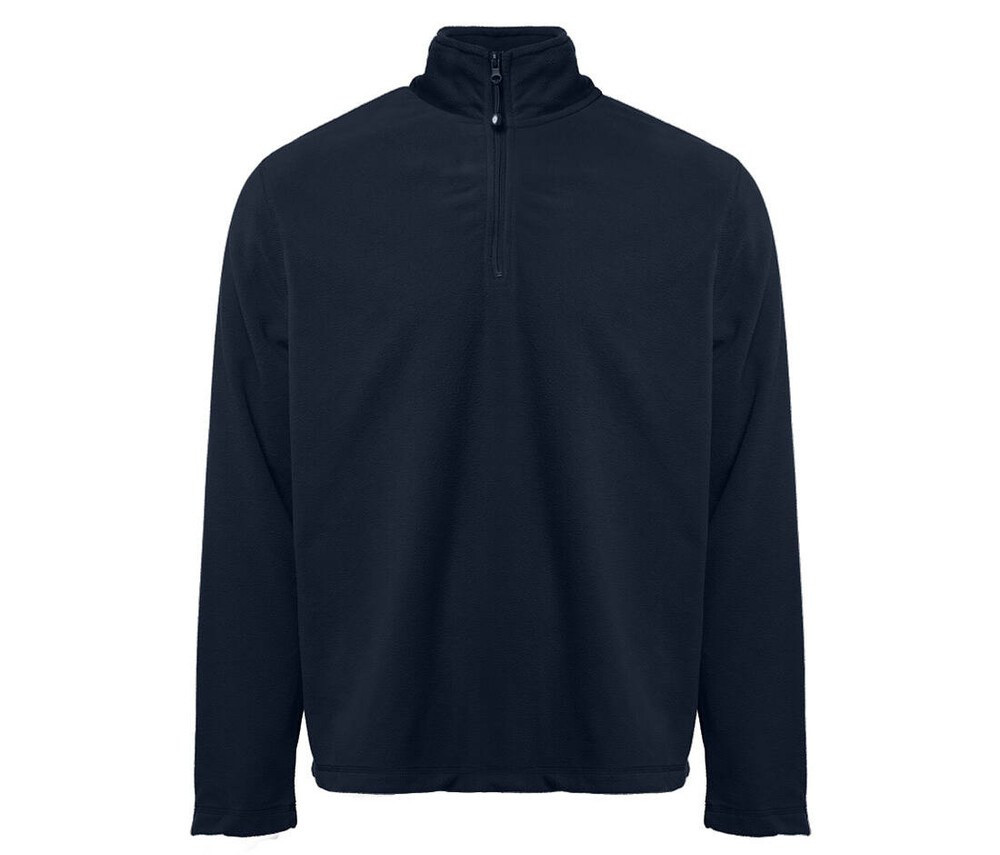 100% polyester. Zip neck fleece. Straight cut. Lint-free. Taped twill. Straight sleeves.