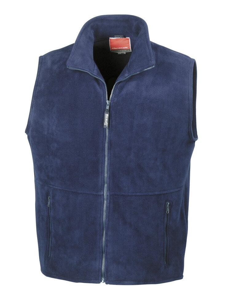 Pill-resistant unlined polyester fleece bodywarmer. Stretchy fit. Full front zip fastening. 2 large front pockets with active fleece by Result® lining. Decorative body yoke. Concealed front reverse. Unlined. Anti-pilling.Decoration Guideline:Decorating methods: Embroidery. Decorators access point: Open Washing Instructions 40 degrees. Do not bleach. Tumble dry on low heat. Do not iron. Professional dry clean