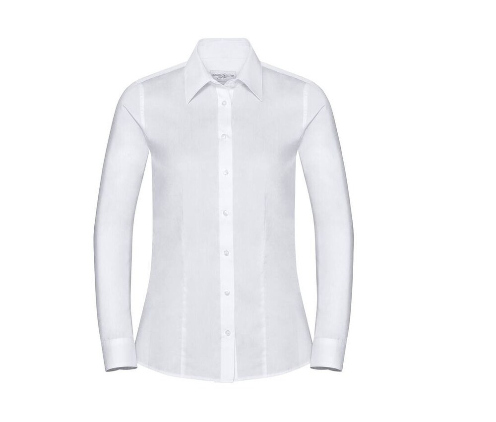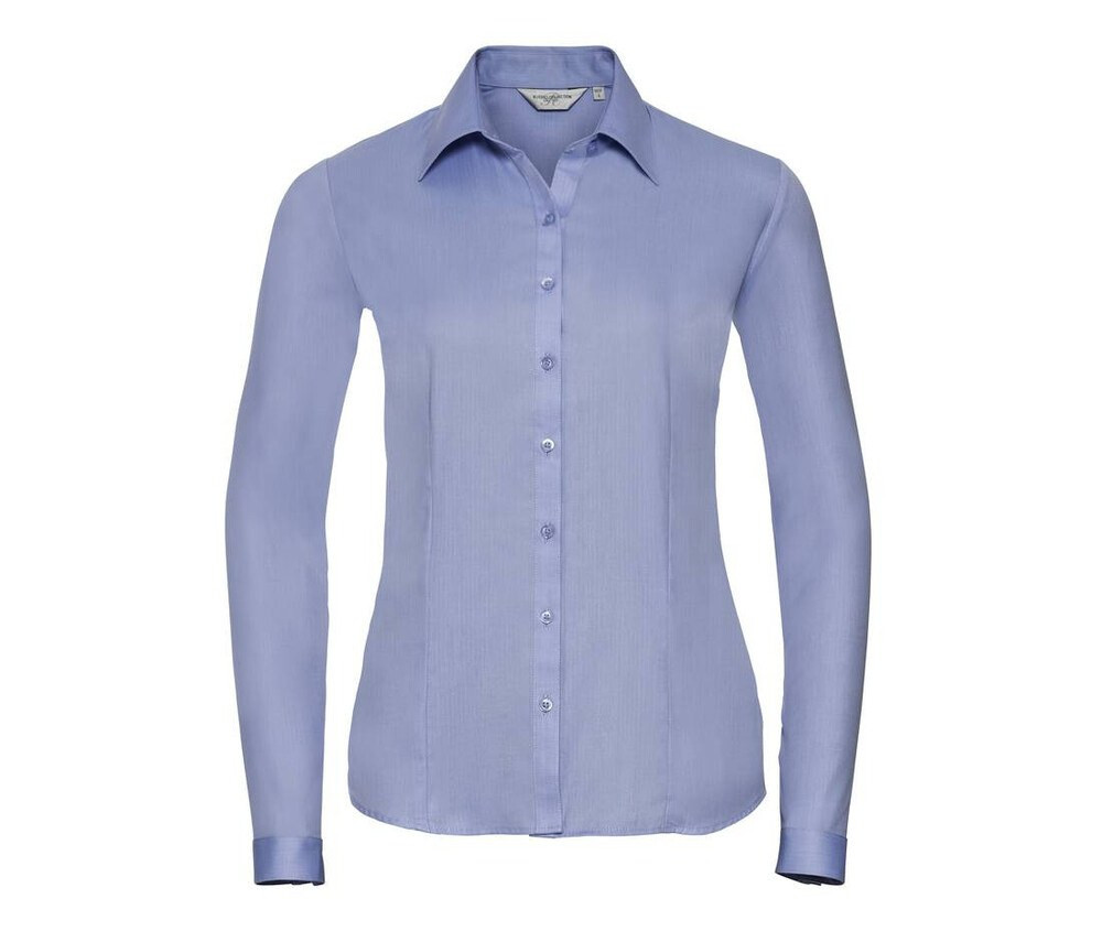 70% Cotton / 30% Polyester Oxford. Button down collar. Back yoke with 2 side pleats. Rounded 2 button adjustable cuffs plus single button on cuff gauntlet. V-shaped pocket over left chest. Rounded hem. Easy care. Spare buttons.
