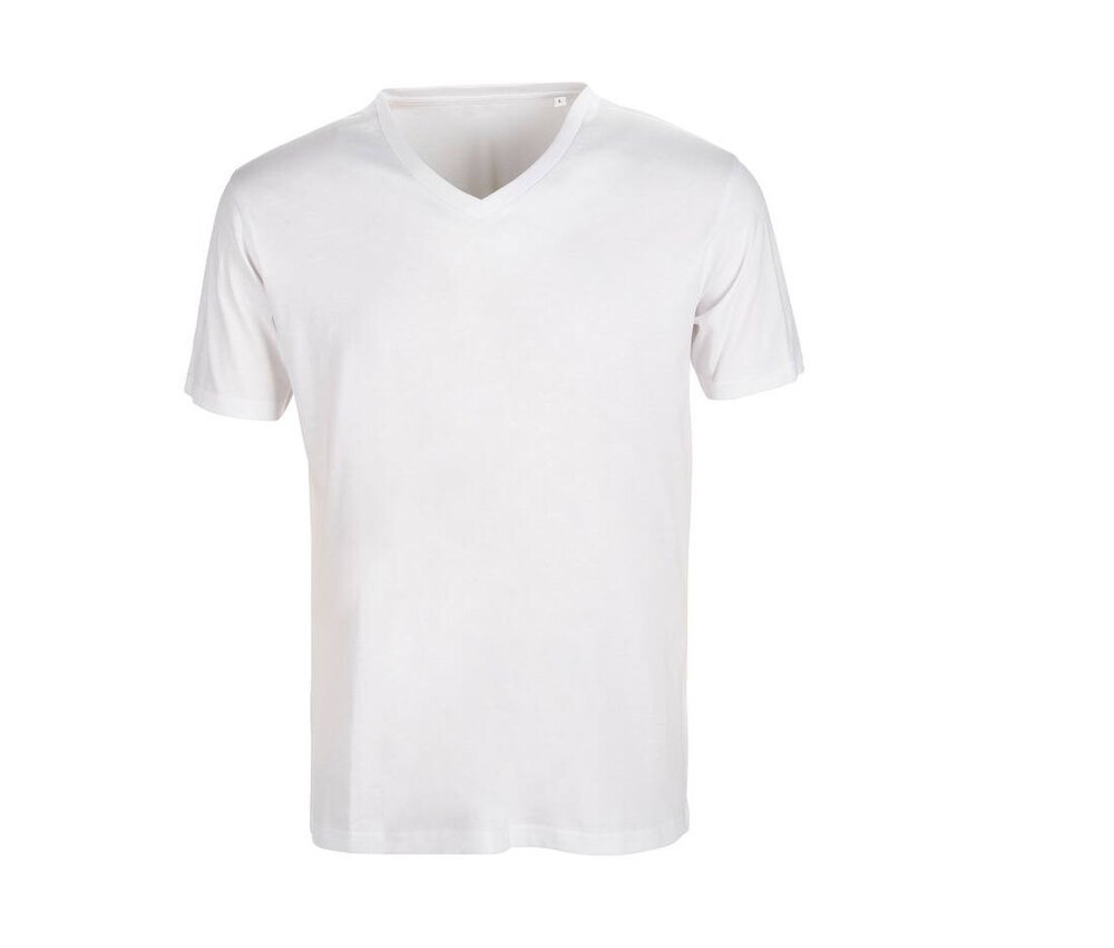 100% combed. V-neck. No brand label, only a tiny label on collar. Composition sewn into the inner left side seam. Fitted silhouette.