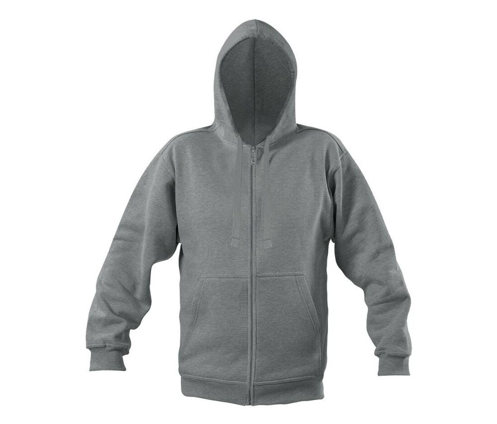 This SW260 Kangaroo Pockets Men 's Hooded Sweatshirt from Starworld is a model that has its place in a modern dressing room. It is practical and functional , it has a lined hood with a tone-on-tone drawstring , kangaroo pockets for small items, and a large tone-on-tone zip . This design is completed with fairly wide cuffs and hem. This sweatshirt is comfortable, pleasant and easy to maintain. It is made in a soft, shiny, silky and resistant combed fabric . It will be a real ally to face the cold in style. To adopt it, it comes in black, navy, sport gray, and black heather, with sizes S to XL .