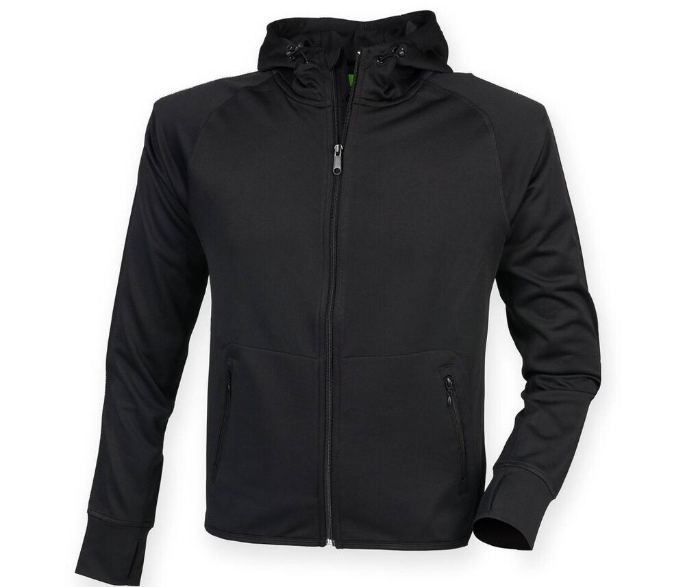 100% polyester. Reflective tape down sleeve. Slim fit and lightweight. Raglan sleeves. Inner MP3 pocket. 2 zipped side entry pockets