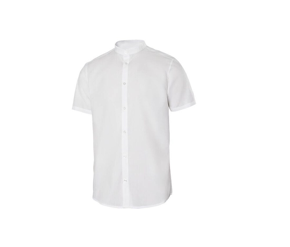 Simple and elegant, this men's shirt features a Mao collar and buttoned flap closure. Its short sleeves and 115 g/m² fabric make it light and comfortable, perfect for summer use.